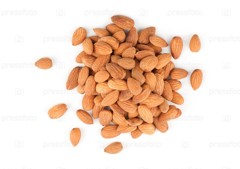 Очищенный миндаль, изолированный на белом