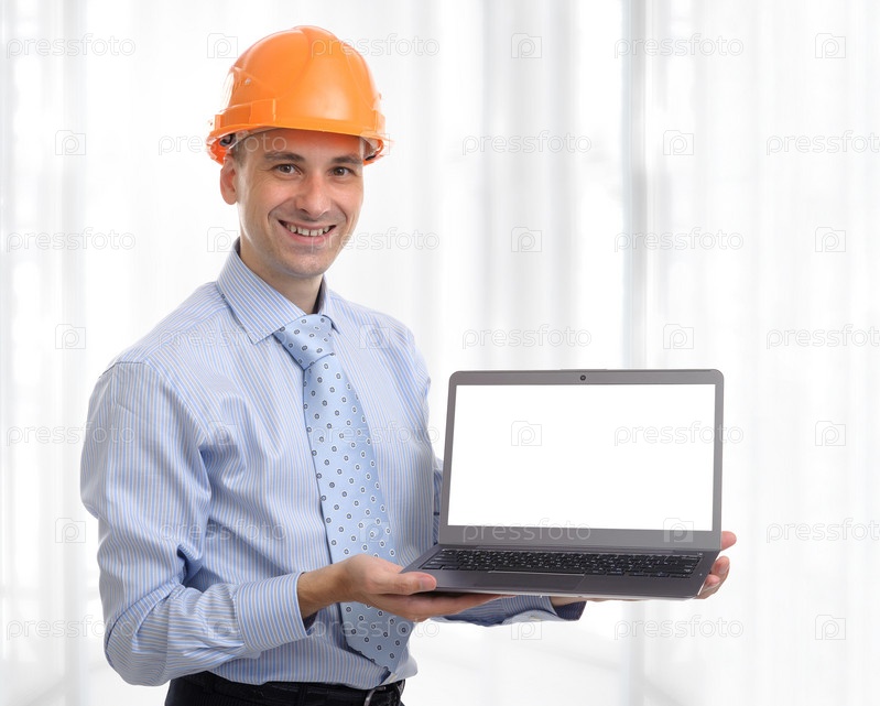 Молодой инженер с ноутбуком