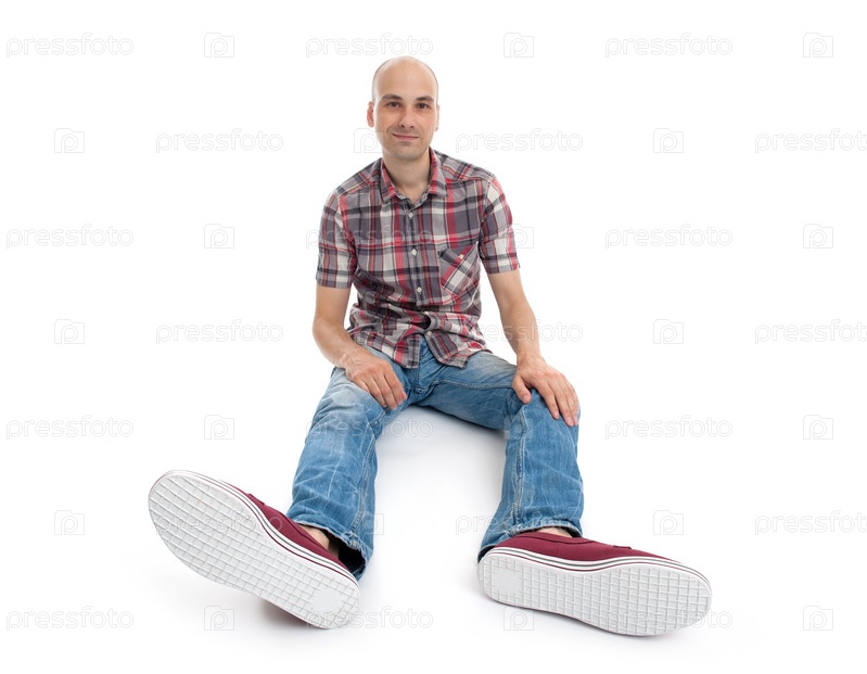 Мужчина в повседневной одежде сидит на полу