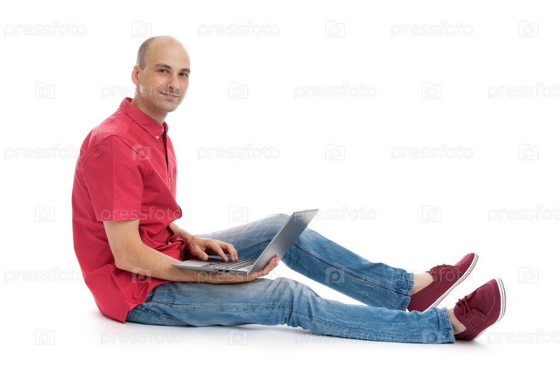 Человек сидит и использует ноутбук