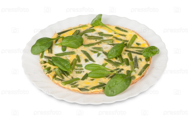 Яичница с зеленой фасолью и шпинатом