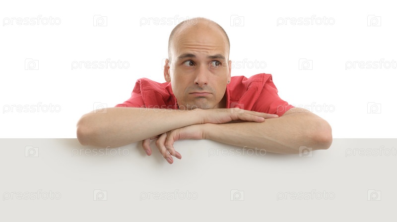 Расстроенный человек стоит за рекламным щитом