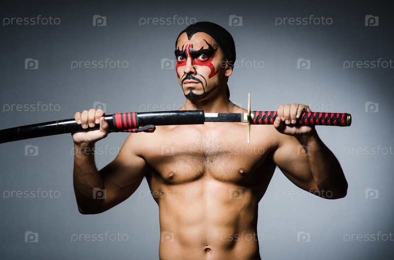 Мужчина с мечом и раскрашенным лицом
