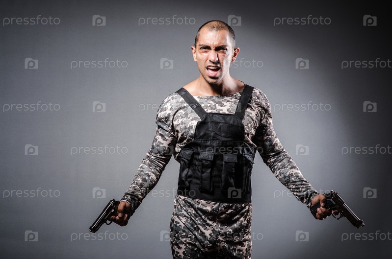 Солдат с оружием на темном фоне
