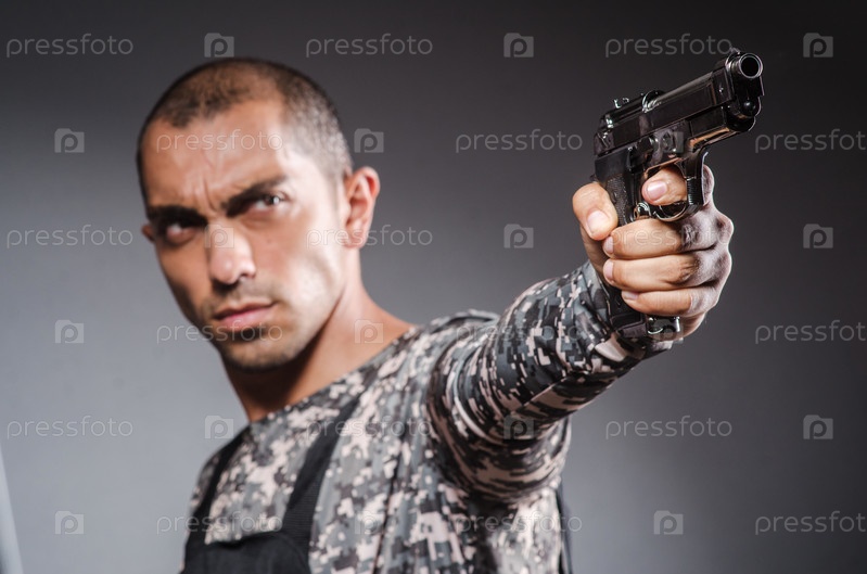 Солдат с оружием на темном фоне