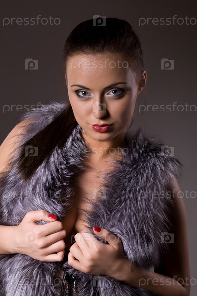 Портрет молодой женщины в меховом боа на черном фоне