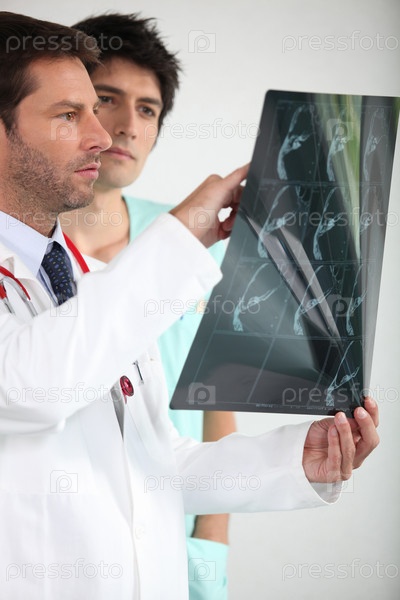 Два врача смотрят на рентгеновское изображение
