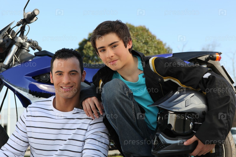 Отец и сын возле мотоцикла