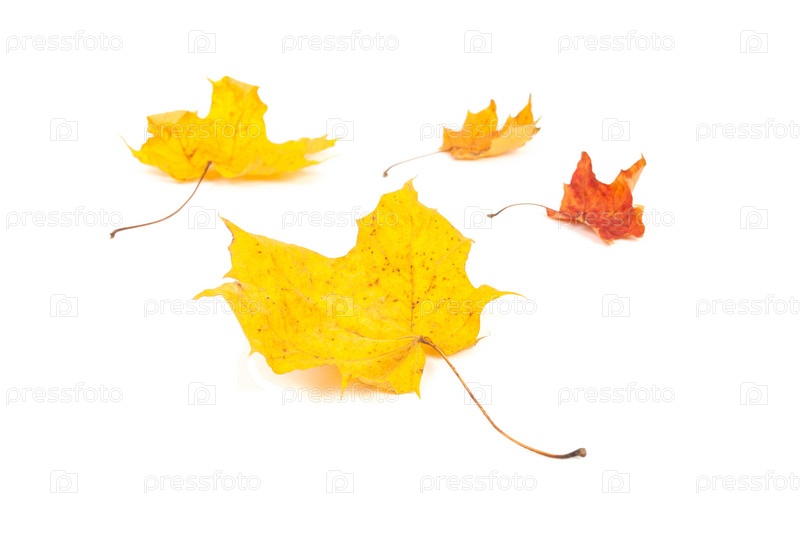 Желтые кленовые листья на белом фоне