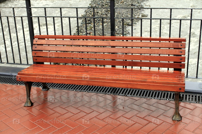 Мокрая скамейка на Романовом мосту в олимпийской деревне Красная поляна