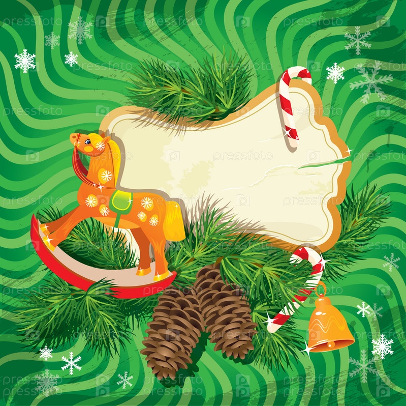 Рождественская и новогодняя открытка на зеленом фоне