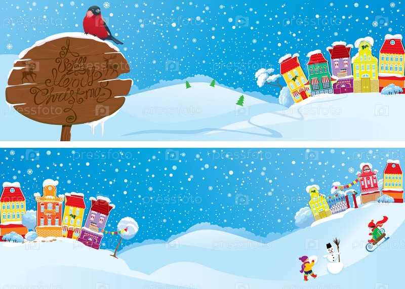 Набор горизонтальных баннеров со сказочным городом на голубом фоне