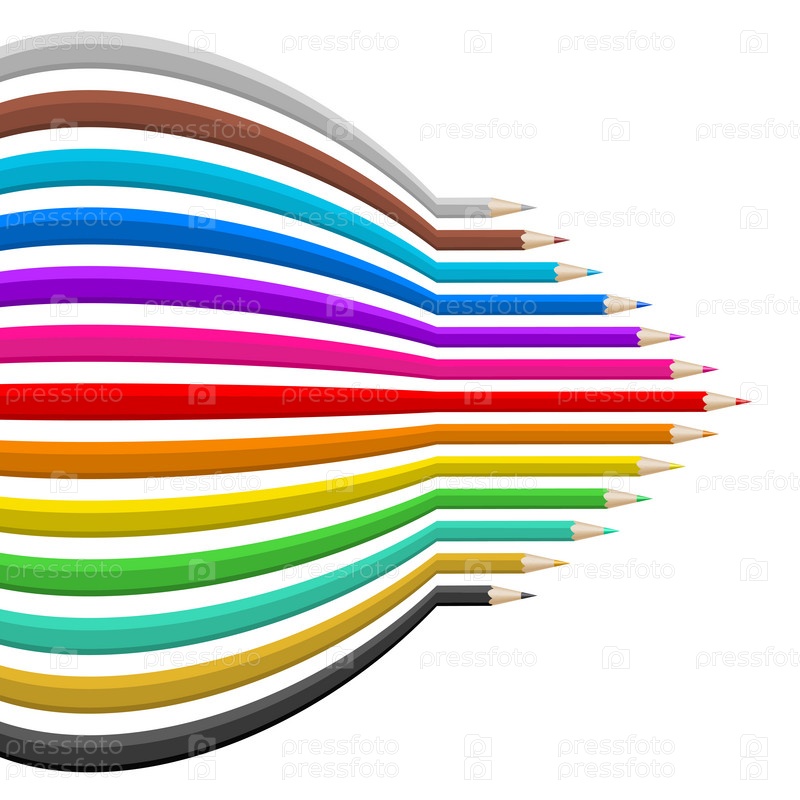 Набор цветных карандашей в абстрактной форме на белом фоне