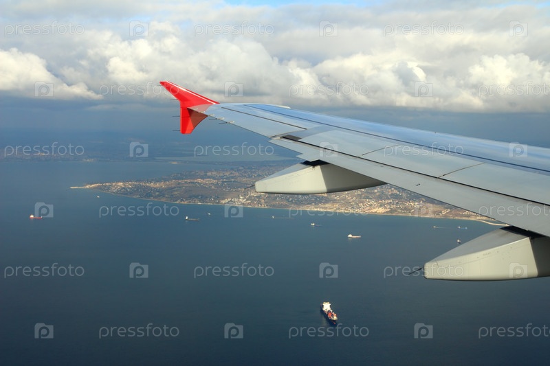 Крыло грузового летящего самолета