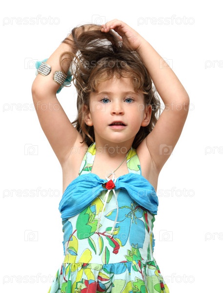 Очаровательная маленькая девочка поднимает волосы