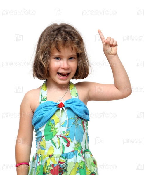Милая маленькая девочка указывает пальцем