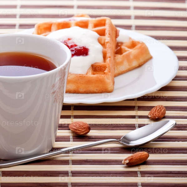 Венские вафли и чай и малиновым вареньем