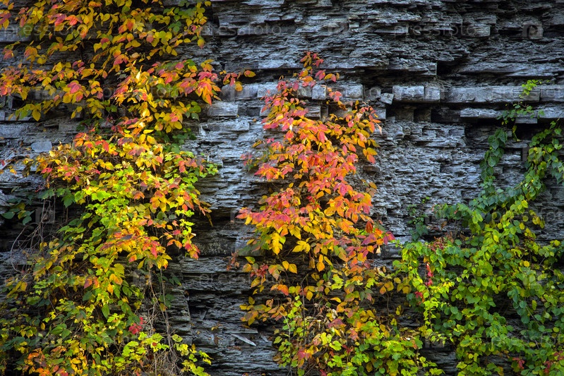 Растение с красными и желтыми листьями к отвесной скалы