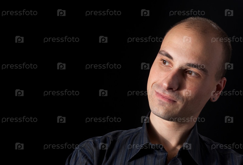 Портрет улыбающегося красивого молодого человека, изолированного на черном фоне