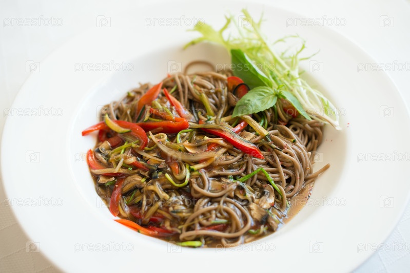 Гречневая лапша удон с овощным соусом