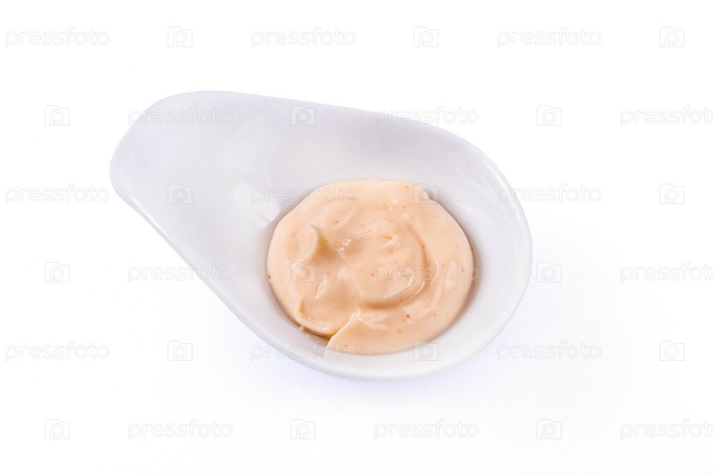Розовый соус в белой миске
