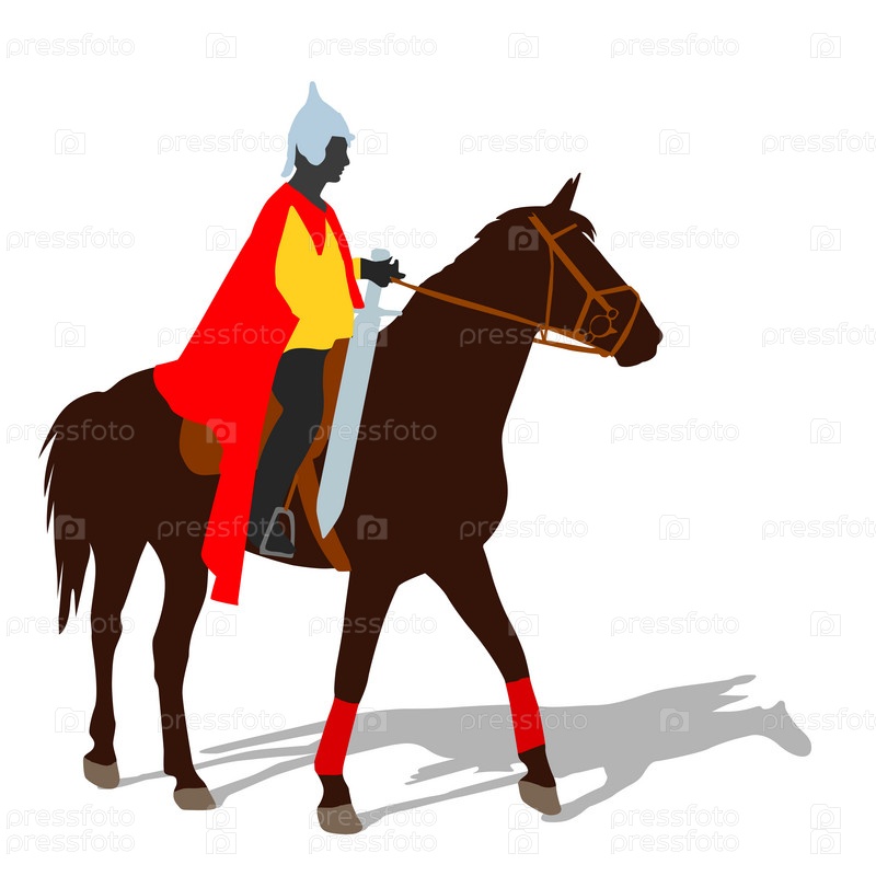 Воин с мечом и в шлеме на коне. Векторный силуэт