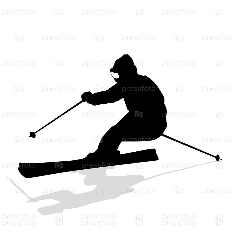 Горнолыжник едет вниз по склону. Векторный силуэт