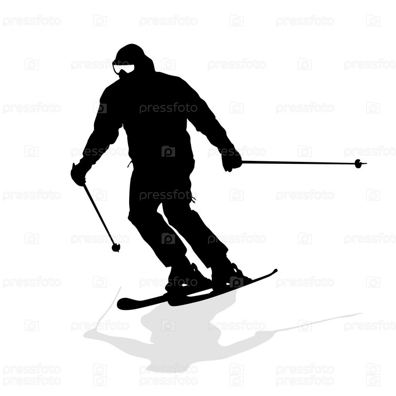 Горнолыжник едет вниз по склону. Векторный силуэт