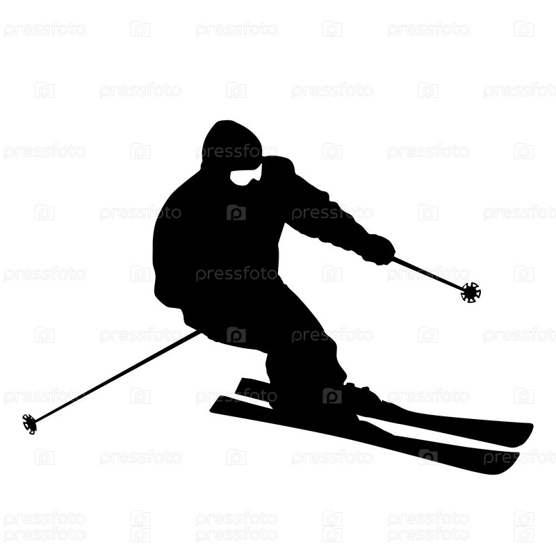 Горнолыжник едет вниз по склону. Векторный силуэт