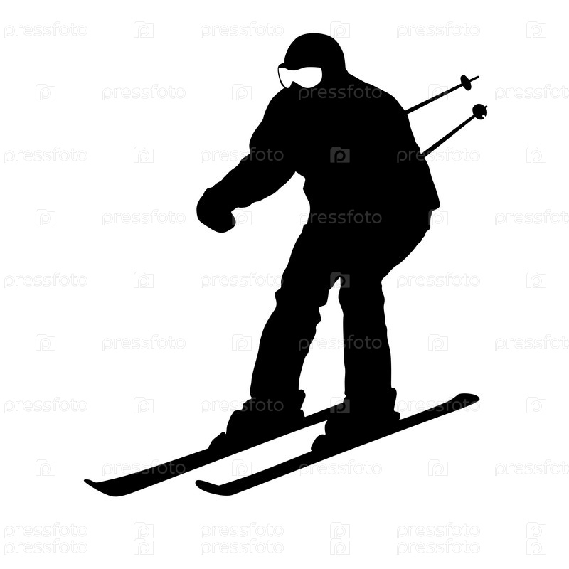 Горнолыжник едет вниз по склону. Векторный силуэт