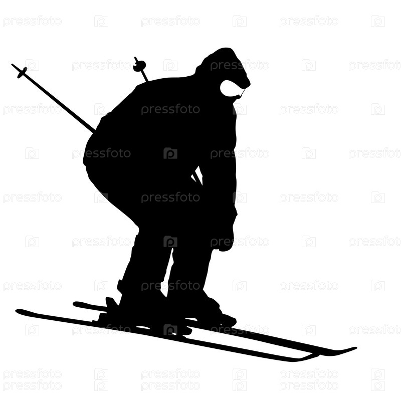 Горнолыжник едет по склону. Векторный силуэт