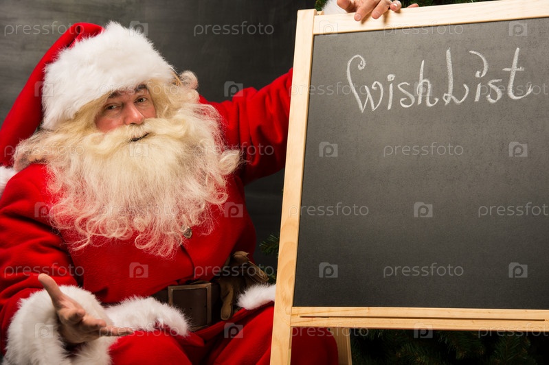 Санта-Клаус сидит возле доске