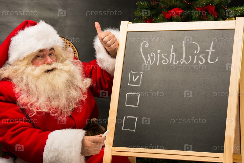 Санта-Клаус сидит возле доски