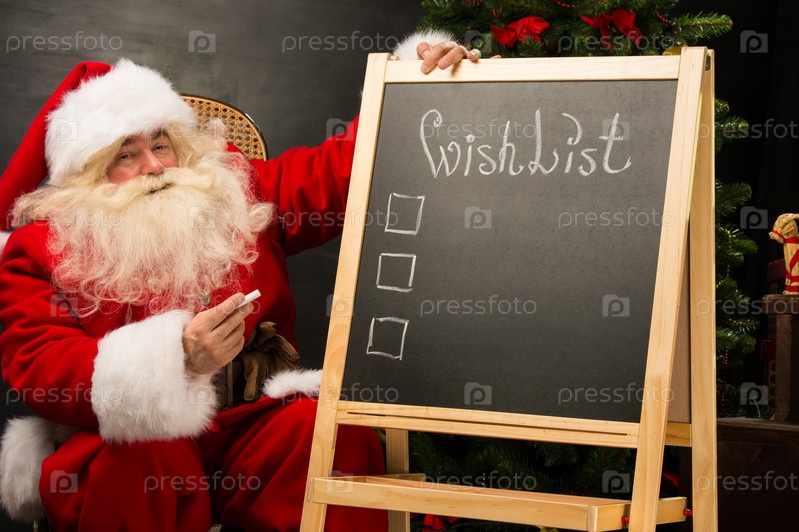 Санта-Клаус сидит возле доски