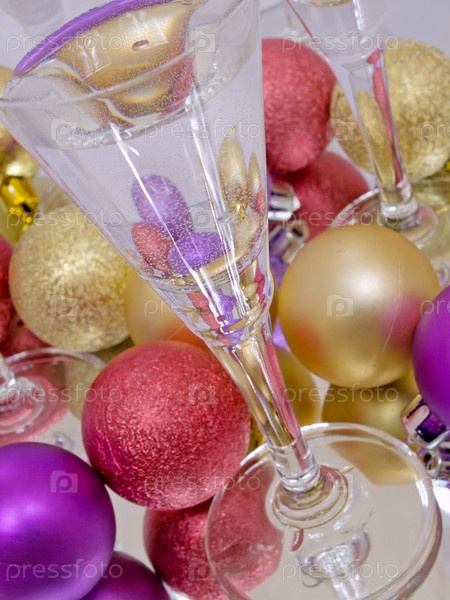 Стеклянные и рождественские шары находятся в зеркале
