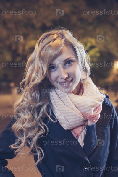 Портрет молодой женщины в ночном городе