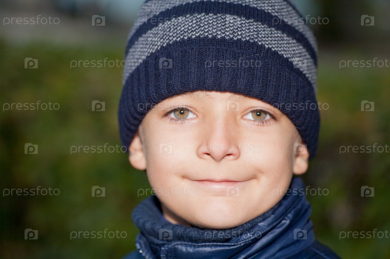 Семилетний мальчик в шапке на открытом воздухе