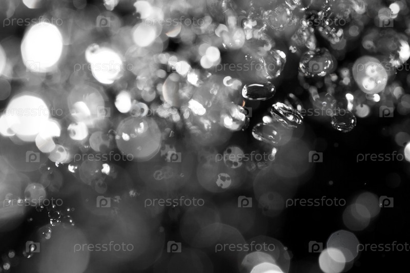 Боке на черном фоне, капли воды в воздухе