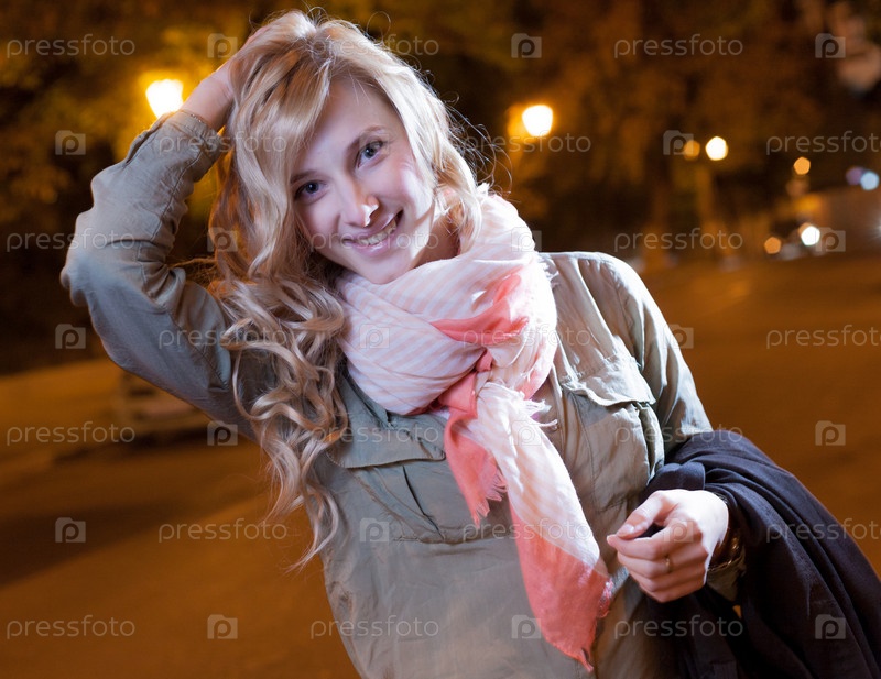 Портрет молодой женщины в ночном городе