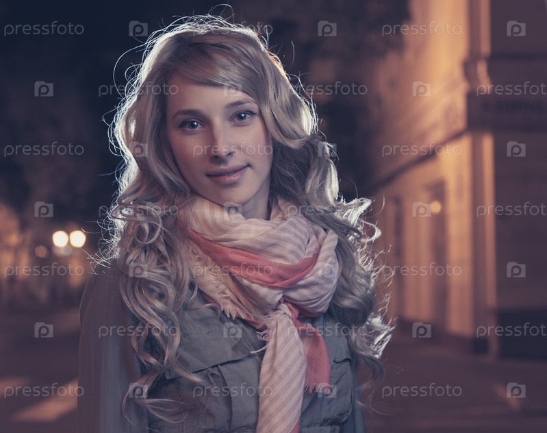 Портрет молодой женщины в ночном городе