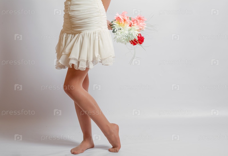 Ноги красивой девушки с букетом
