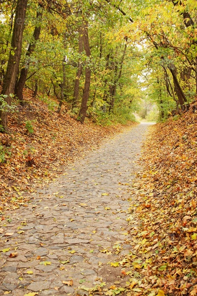 Осенняя кленовая аллея с опавшими листьями