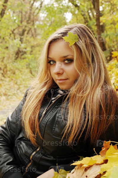 Портрет девушки, лежащей на осенних листьях