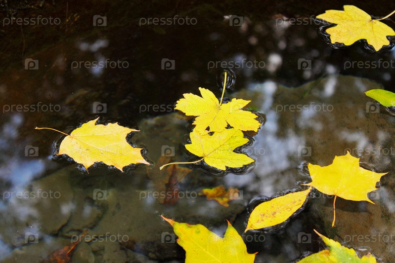 Желтые осенние листья, плавающие в воде