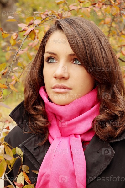 Портрет красивой молодой женщины в осеннем парке