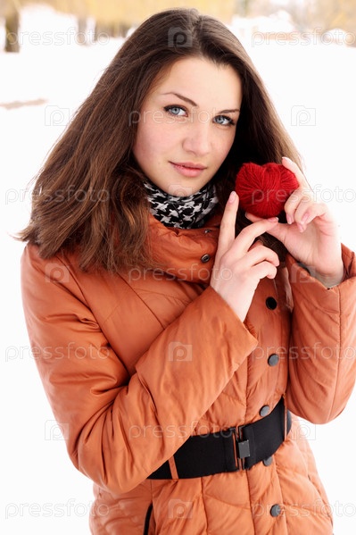 Молодая женщина держит красное сердце