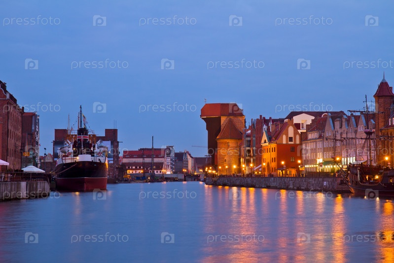 Набережная Мотлавы и старый Гданьск ночью