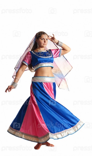 Девушка в традиционном костюме танцует арабский танец