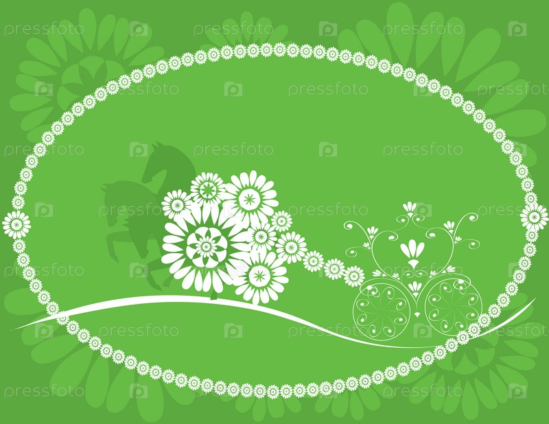 Иллюстрация с изображением кареты с лошадьми на зеленом фоне