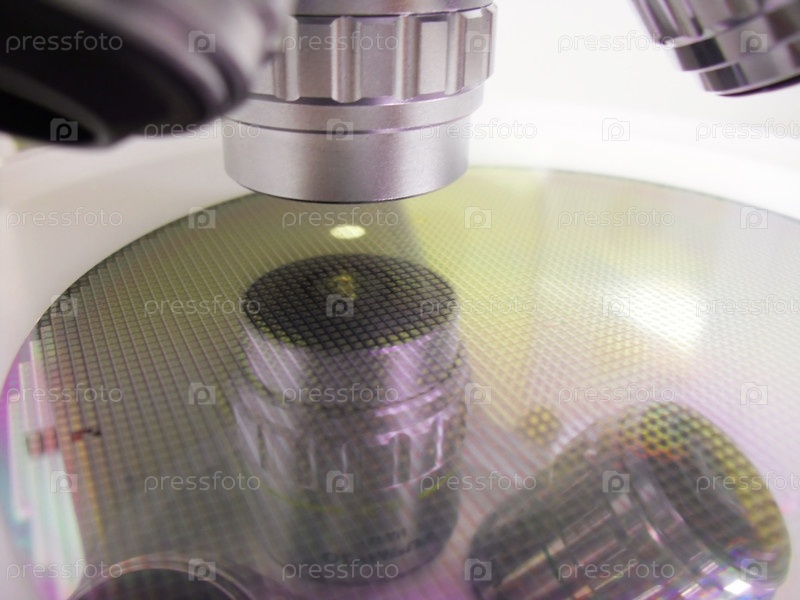 Кремниевая подложка под микроскопом